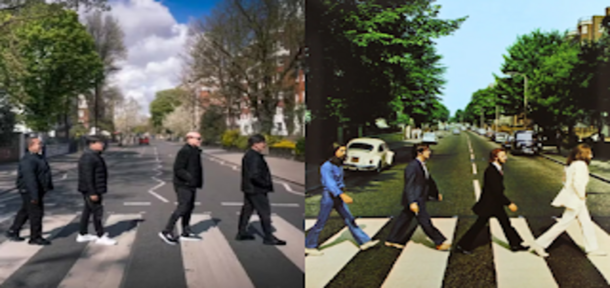 Banda Grafith recria foto clássica dos Beatles em viagem pela Europa.