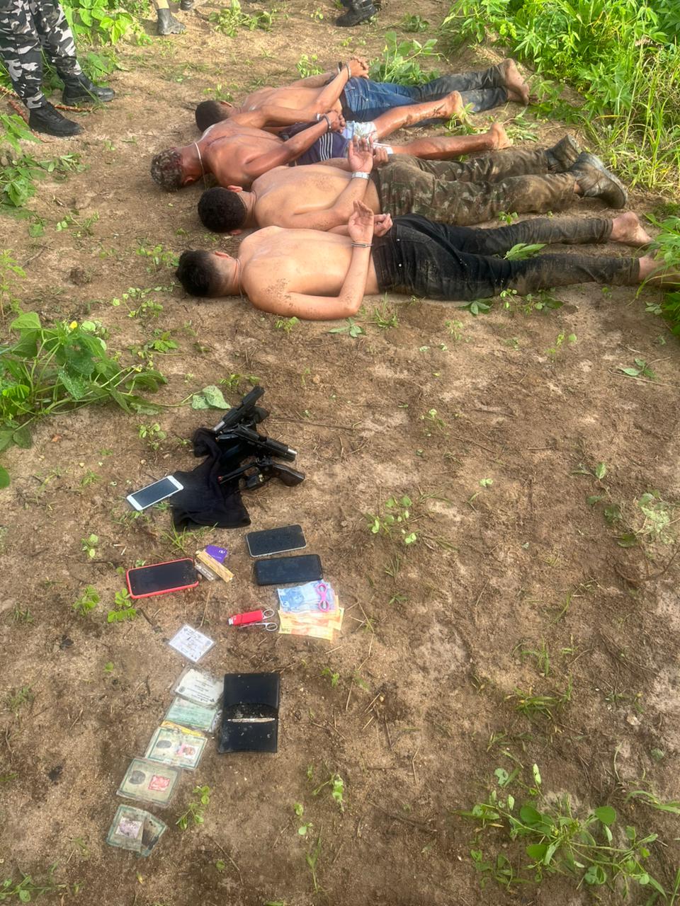 Uma ação da Polícia Militar na comunidade de Gurugi, distrito de Conde, resultou na prisão de quatro suspeitos e na apreensão de três armas de fogo, na tarde desta segunda-feira (12). Um quinto envolvido foi baleado durante o confronto entre facções e socorrido para uma unidade de saúde.