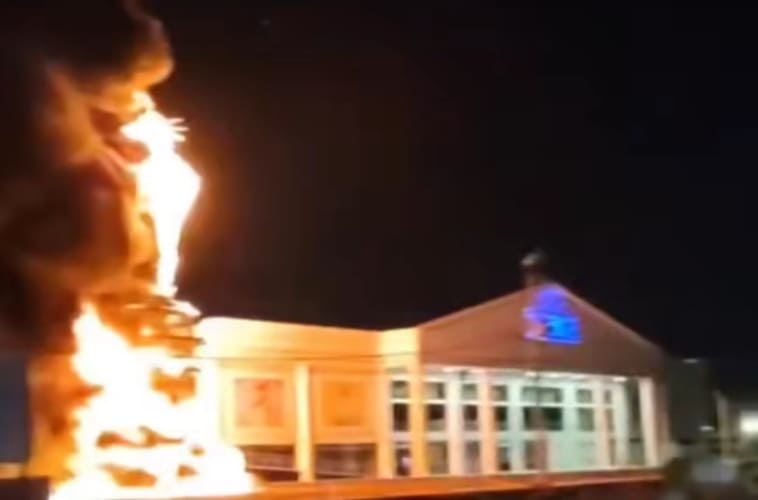 Baseado em imagens de câmeras de segurança da loja Havan, em Petrolina-PB, Luciano Hang afirma que o incêndio na Estátua da Liberdade foi criminoso após dois suspeitos ser vistos chegando no local por volta das 2h e ateando fogo no equipamento.