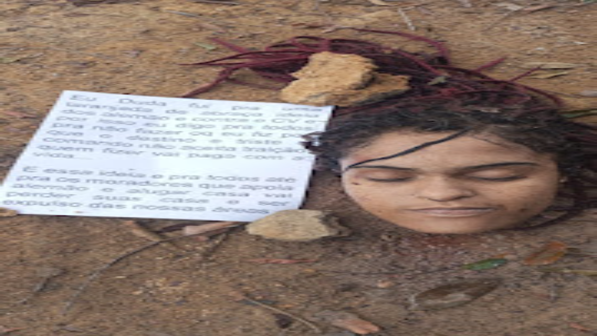 Ao lado da cabeça da jovem, os criminosos deixaram um bilhete, no qual afirmavam o suposto vínculo dela com a facção rival e faziam um alerta sobre os riscos de envolvimento com grupos criminosos. A cidade vive atualmente uma disputa sangrenta entre o Comando Vermelho (CV) e o BDM.