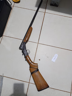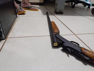 Na casa do acusado, localizada perto da Vila do Argola, os policiais militares encontraram a espingarda e o cartucho deflagrado. Raimundo não foi localizado e é considerado foragido. Segundo o que consta no boletim de ocorrência, a vítima também era casada e o esposo dela seria um presidiário identificado como “mingalzeiro”.