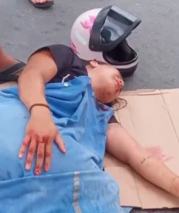 A condutora da motocicleta caiu ao solo e apresentava sangramento no momento do ocorrido, o que gerou preocupação entre pessoas que estavam no local.