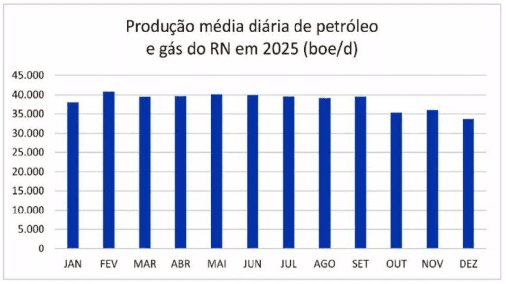 Em dezembro de 2025, a produção petrolífera potiguar atingiu um novo recorde histórico negativo, rebaixando os números registrados em outubro do mesmo ano. Segundo a última edição do Boletim Mensal da Produção de Óleo e Gás, publicado regularmente pela Agência Nacional do Petróleo, Gás Natural e Biocombustíveis (ANP) e divulgado no início de fevereiro, a média diária de produção no último mês do ano foi de 33.678 barris de óleo equivalente (boe/d). A medida representa a soma dos volumes de petróleo e gás natural extraídos no período e corresponde à menor média diária mensal registrada nos últimos 40 anos.